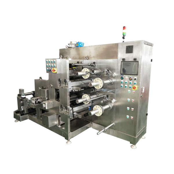结构形式:放卷采用气涨轴,磁粉制动器恒张力控制,光电行程纠偏控制;收卷采用两根优质滑差轴保证分切后每条极片张力一致;分切采用包角分切方式,特别适合间歇涂布后窄宽幅极片的分切。  |